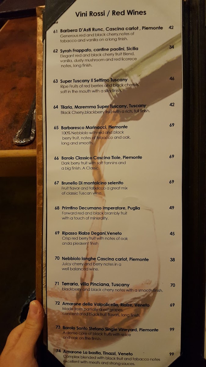 Wine enthusiasts will revel in the carefully curated wine list, featuring gems like the Chianti Classico and a selection of unique organic wines. Pair your meal with a glass of Prosecco Gold or a refreshing Moscato D'asti to elevate your dining experience. And don’t forget to save room for dessert; the tiramisu often receives rave reviews and is described as a must-try.